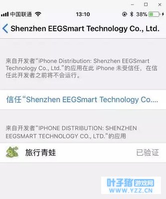 安装好之后需要信任一下描述文件,这个安装过非App Store软件的基本都知道,打开设置→通用→描述文件与设备管理→选择shenzhen EEGSmart 这个,然后点击信任。