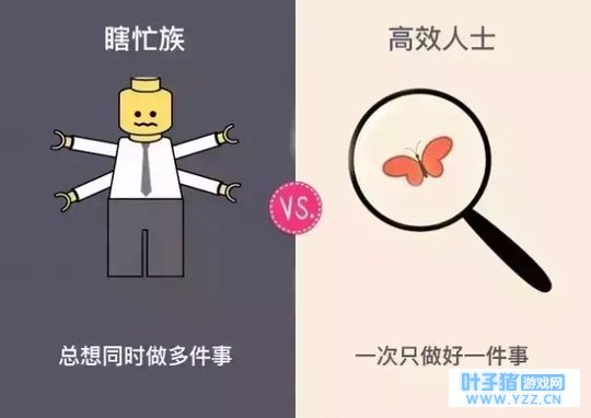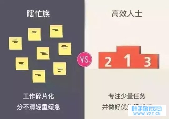 多任务处理 VS 专注再专注 瞎忙族经常高估自己的能力,总想实现传说中的“多任务处理”。但是现实情况,却是各种事情乱成一团麻,效率反而大大降低。 高效人士相信专注的力量,一次只求做好一件事。遇到重要的任务,他们会给自己安排整块的不被打扰的时间,给自己找一个安静的封闭空间,以最高的效率攻克一个堡垒,然后再下一个。