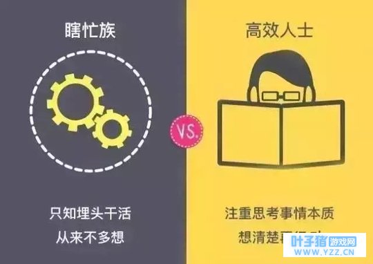 埋头干活 VS 抬头看路 瞎忙族经常看起来好像很有执行力,接到任务说干就干,但是经常干到一半,发现方向错了!一切又得推倒重来,反反复复,效率低不说,还浪费公司资源。 而高效人士不仅能埋头干活,也非常注重抬头看路。行动之前,花必要的时间想清楚问题的本质是什么,怎么做最合理,有没有更优的方案?低效率和无用功是他们极力避免的。