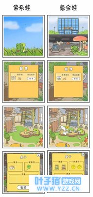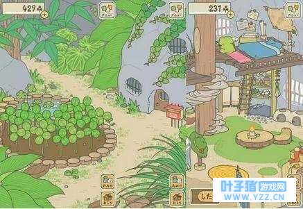 游戏的主页面有两个 一个是庭院,一个是蛙的房间 (对,没错,你没有房间,睡草垫上,谢谢)