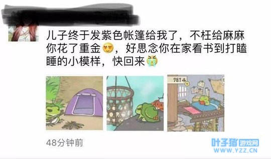 !连蛙都知道捎个明信片,你呢?不过也有人在单纯享受这个游戏本身:“就是给它买好的,招待它的朋友!期盼它回家,又希望它出去看世界。” 而且,养蛙比真实养娃还是省事儿多了,又不像其他游戏那么费钱费精力……还有人说:“能玩下去并不是因为有成就感或为人父母、子女的代入感,单纯是设计简单,不会占我太多时间,却又能感受到它给我带来的小小的温暖。”确实,对于这只蛙,你无法交流,也做不到陪伴,你只需要等。在《旅行青蛙》游戏里还有一个不成文的游戏规律:你给蛙吃得越好,买的旅行装备越好,它交到的朋友也越多,甚至还恋爱。而如果给它买最便宜的东西,它可能永远孤身一人,没什么朋友,去的景点也就是那些个,还有可能离家出走…… 蛙界也是如此现实。是否像极了每个留学生与父母的关系?父母拼命赚“三叶草”,就是为了给孩子更好的,让他们见识更大的世界。即使他们无法陪伴,还是愿意让孩子远行。蛙同你分享明信片时,就如同你与父母视频聊天一样,父母听着你说的新鲜趣事,就像自己也去过一样兴奋。