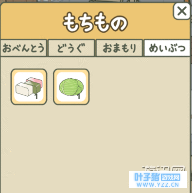 菜单内可以查看已有物品もちもの、うらべや、ヘルプ。 已有物品包含おべんとう-便当 おまもり-护身符 どうぐ-道具 和めいぶつ名物,うらべや和上面写的功能一样,而ヘルプ就是帮助。