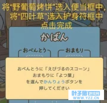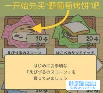 【购买便当】用收割获得的18枚三叶草去商店买便当时,点击“野葡萄烤饼”,此时出现红框圈定,再点击一次就会出现购买确认窗口了。