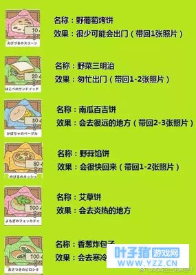 5、【现有物品】包括【便当】(口粮)、【道具】、【护身符】和【特产】。便当和道具基本都可以在商店买到,具体的使用请见图。注意暗示天气和返回速度的口粮,防止迷路的灯具,以及可能带来好收获的护身符。碗的作用是划船,包裹布和帐篷不同款式的区别不大,基本可以随便买。