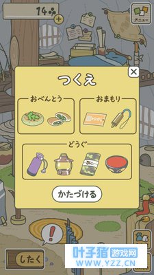 7.蛙回家后,如果桌子上有东西,会自己收拾东西进背包。 按下蓝色背包下面的确认,使页面变灰,会让蛙更早出门。 如果蛙回家了,而你没有看望他,它有可能会自己收拾桌上的东西再次出去旅行,这时候提示会不同。
