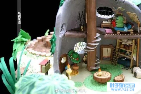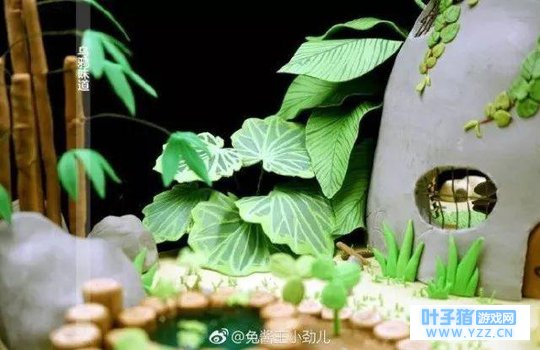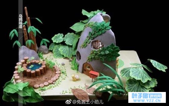 最近超火的游戏《旅行青蛙》刷爆网络,有位网友“兔酱王小劲儿”用翻糖蛋糕做了一个实体化的青蛙家场景