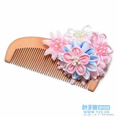外郎是日本传统的和果子之一,由米粉蒸制而成。可加入黑砂糖、砂糖、豆馅、抹茶等原料做出不同颜色、不同口味,不仅美观而且可口。600年前一位名叫“陈外郎”的从中国来到日本,在日本时研制出了这种能够止咳化痰的点心,因此得名。 装饰用发梳