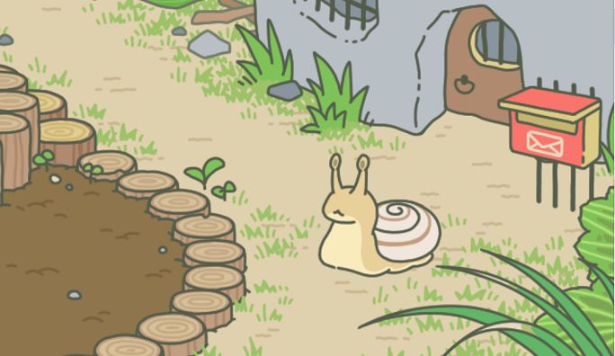 它们 一个喜静,一个喜闹 ; 一个内向而孤独,经常独自旅行,一个外向善交际,喜欢呼朋唤友; 一个不喜欢戴头巾,一个喜欢戴头巾 。它们就是游戏里的 潘粤明 和 潘粤暗 ! 当然,它们远远没有潘粤明老师缜密,这么快就被我识出了破绽。 到这里, 蛙蛙双侠逃亡记 的故事主线已经基本浮现出来了,但唯独有一点,我没有想明白:空帮蛙们为什么时不时要回到屋子里来?他们离家出走分头去找出口不是更高效吗? 这时,我看到了门外来玩的蜗牛。 疑点六:蜗牛 空帮蛙的家门口有时候蹲着一只酱紫的蜗牛,眼神呆滞,心不在焉,还会问玩家要吃的。