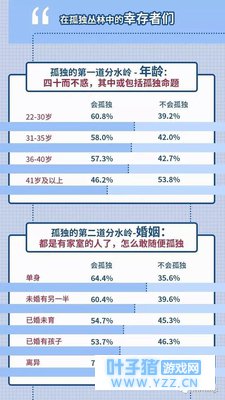 脉脉数据研究院对上万名职场人进行了一次“孤独感”调查,并联合小猪短租,共同发布了《2017年度职业数据白皮书:孤独经济》,调查显示,61.47%的人,平时会感觉孤独,其中,22-30岁的年龄孤独比例是60.8%;