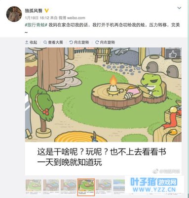 正如知名搞笑幽默博主@独孤风翳发的微博中所写的“#旅行青蛙# 我妈在家念叨我的话,我打开手机再念叨给我的蛙,压力转移,完美~ ”。类似的游戏,还是多年前的偷菜,菜是自己的宝贝,辛辛苦苦浇水施肥,还有提防被别人偷走。