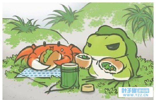青蛙在和螃蟹一起享用可口的午餐呢~