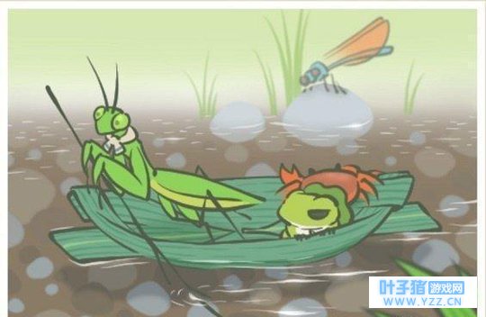 看,青蛙和螳螂在一叶扁舟上享受生活呢~