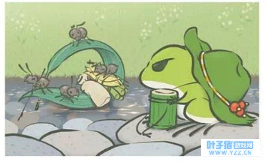 蛙蛙的第一次飞行体验 9、蛙蛙河边取水偶遇小蚂蚁,蚂蚁们不仅勤劳还很聪明呢,居然驾着小船!!!