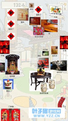 2,既然有了原图的结构,再结合有钱没钱回家过年的主题,自然新年带一个女朋友回家是非常合理(父母喜欢)的创意了,所以第二层就设计成带女朋友回来见家长谈论婚事的情节。而且想要突出“闹新年”的气氛,家里自然动物角色也需要很多,那么第二层就是亲朋好友聚餐热热闹闹过大年的场景,使得活动区域和厨房能充分的利用,如下图这是新的功能划分。