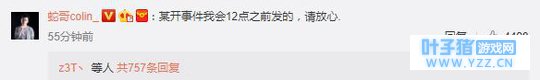 但是这显然不是大家想看到的瓜,因为昨天蛇哥所说的今天揭露五五开事件的全部真相才是大家期待的新年大瓜。 所以蛇哥马上在自己的微博中评论表示“某开事件我会12点之前发的,请放心”。