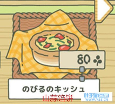 最普通的一种食物,也是标价最便宜的食物,但是这种食物也很神奇。只要肚子饿了,就可以买给青蛙吃,好像首次出门就是带葡萄干司康出门的。蛙崽子如果吃这种食物的话,还是可以充饥的。同时也证明了一种情况,就是你身上的三叶草数量已经不多了。 2.山蒜馅饼