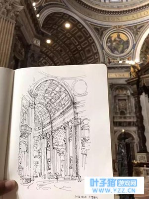 圣陵金顶 可从东方一步一步走到西方,画画让史伦不停去发现,那些在旅行中没看到的元素。 「当你在用自己的方式记录了一座城市或建筑后,你会发现接下来的旅程中会看到很多相同的元素,或以更加繁复、更加变体多样的形式出现,而这个过程里,你会感觉到文化的互相交融、互相影响、互相借鉴。」