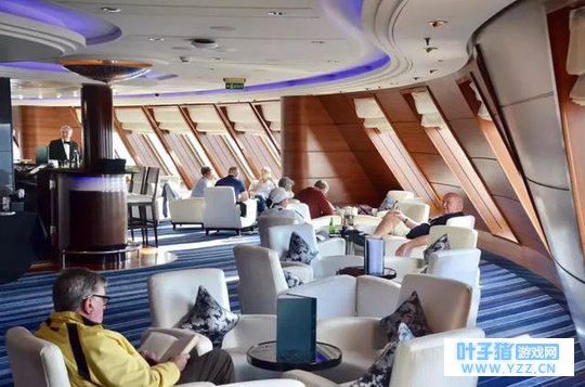 十多层甲板间来回游走, 四五个泳池、十多间酒吧 ,全世界独一无二的海上图书馆、海上天文台,以及风格各异的大师讲座、时装T台秀。 每天的活动信息和全球资讯资讯变成报纸,在晚间准时送达房间,船上电视台和二十四小时不间断广播电台,对各场活动进行专题报道和转播。