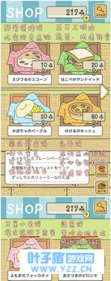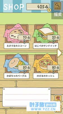 我们可以从右下角的入口进入商店,里面可以看到各种各样的食物和道具: 「便当」:食物是蛙蛙出门必须要准备的东西 10棵草 烤饼,是最为简单的主食。 20棵草 巨石三文治,草草了事的快餐。 50棵草 南瓜百吉饼,分量充足,适合蛙蛙出门远游携带。 80棵草 乳蛋饼,口感比较好,蛙蛙吃了会早点回家。 100棵草 艾蒿小麦饼 适合去热的地方吃。 100棵草 辣葱饼, 适合去冷的地方吃。 PS:食物是给青蛙出去旅行的必备品,需要不断购买。