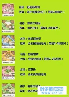 带不同的食物,对旅途也会有影响,据现有玩家们总结,有以下趋势: