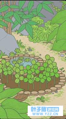 率先映入眼帘的是蛙蛙的庭院,眼前那短树桩圈起的土地里种植着的三叶草便是游戏里的“钱”了。你用它可换置蛙蛙旅行所需的食物和道具。与疯狂“掏空”你腰包的李泽言们不同,三叶草庭院里自己就会生长,连种植步骤都免了。当然,多金玩家左上角氪金按钮走好。