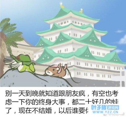 可以说,对我这种非手游爱好者而言,这游戏简直太容易上手了:总共两个场景来回切换,收收庭院的三叶草,偶尔打包下行李,其他大部分时间无事可做。也正因如此,我随时都能去游戏里瞅瞅,毕竟我打开看几眼,做点可做之事,分分钟都能解决,很适应中国当前碎片化时代的节奏。工作闲暇之余,如蜻蜓点水般掠过游戏即可。虽说停留时间少,但提升了打开应用的频次,将尾部时间聚集起来抑或是笔可观的数量。 一张张照片犹如抖包袱,充满惊喜 如果说,收割三叶草还能使人回想起定时起夜偷菜的疯狂,那么《旅行青蛙》里设置的持续吸睛点,或许更能为你展现与偷菜游戏全然迥异的“天空”。 通常来说,游戏想长期吸引玩家,必须能持续进行内容更迭或增加/改变玩法,简言之给玩家创造新鲜感。类似相声里,讲演者通过先前的酝酿铺垫,最后把“包袱”抖出来,引观众发笑,再凭借节奏的把控,一个包袱接着一个包袱,完美达成整场相声的“笑果”。 偷菜因自身题材受限,能抖的“包袱”很少,且可期待性也较低。当时所有的变化,就围绕增添作物品种、拓展耕地、土壤升级优化、开辟牧场等方面,而这种升级变化是以牺牲游戏简单轻量的操作为代价的。至少,从游戏内容来说,这也是偷菜游戏风火了三四年后,走向衰落的原因之一。 反观《旅行青蛙》,游戏场景为吸引更多受众,原本设置就简单,近在庭院和家中切换。这里我们能看到,游戏制造商的“克制”,特地只有小小一块地种三叶草,既没往土地开垦上“动脑筋”,也没让蛙蛙拥有“三宫六院”啥的。 但青蛙游戏设定的旅行题材,在保持原有游戏的简单操作上,大大延展了场景面。蛙蛙会路过许多别样的风景,遇见新的小伙伴们,把远在游戏外的感动与真实用照片分享予你,带远方的礼物回来给你。 正因每次旅行没有预期,所以无论蛙蛙归来与否,收到照片、礼物都是一个个足以敲打内心的“包袱”,蛙蛙未曾说任何一句话,游戏全凭想象和感受,却也治愈得没有痕迹,感动得没有负担。 我的蛙蛙Li好久没回来了,我只能打开家里扶梯旁一侧的门帘,翻看着它出行的“回忆”,想它。
