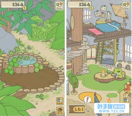 《旅行青蛙》 说回游戏吧,这款游戏的场景十分简单,甚至可以说是简陋了,整个游戏就两个场景:庭院和屋内。