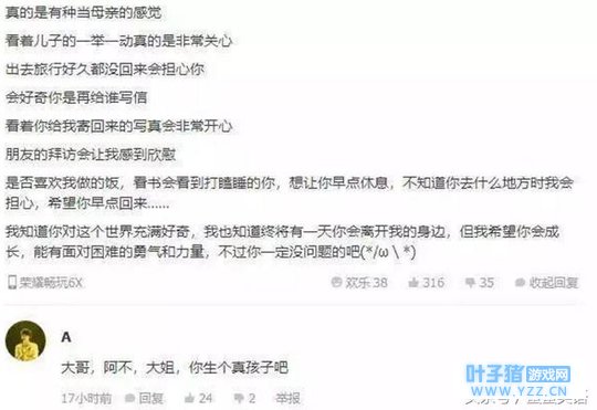 “儿子去哪啦?” “儿子怎么还不回家啊?” “儿子好好学习。” “儿子早点睡啊。” 之类的话让我感受到大家那极度的自我多情。