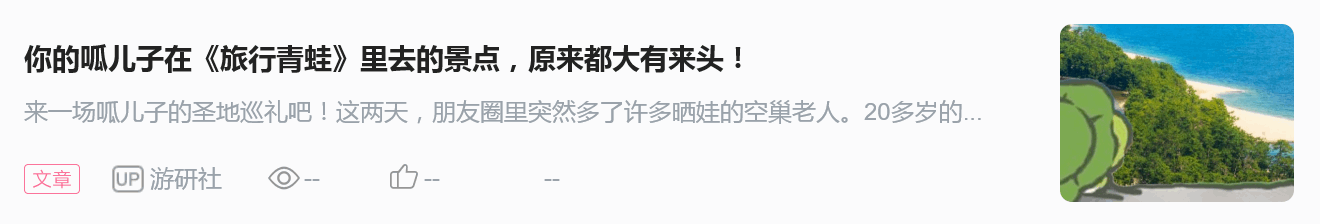 不知什么时候开始,在“老公不给我打电话”的声音中传来了“孩子整天宅在家”。惊了!进度这么快的吗?…原来是一款新的游戏《旅行青蛙》,带着它清新治愈的画风进入了大家的视野。 我们的小青蛙会在它愿意的时候出门旅游玩耍,期间你的蛙宝宝会给你寄来明信片,归家时还会带礼物回来。而你需要做的、能做的只是为它准备好各种旅行用的道具和…等待。 当你疲于寒假作业,看看你的青蛙旅行中给你寄回的明信片,是否感到一丝安慰呢?如果你被缠着“生娃”的问题,就告诉他们“蛙啊,出门旅行了还没回来呢。”吧~233