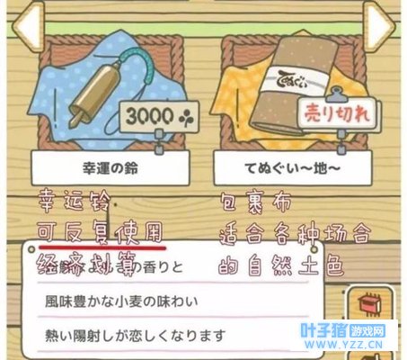 接下来说说道具,可以存钱买个幸运铃,也就是护身符~避免没有四叶草的尴尬。包裹布的话主要是装饰用。可以在拍回来的明信片里收到~