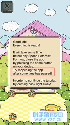 再来说说“操作简单、不占据用户时间”。 以《汤匙宠物收集》为例,电宝在体验这款游戏的时候,在日英两个语言系统中选择了英文模式,只进行了放置杯子、摆放食物两项操作,就可以退出App,等着随机出现的小动物上门拜访了,操作简洁,又不用花费大量的时间。