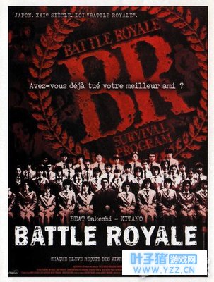 2000上映的电影《大逃杀》,讲诉的就是日本政府为了培养在逆境中坚忍不拔的青少年一代,每年都从全国学校随机抽出一个班级的同学,前往荒岛进行生存挑战。老师发给学生地图、粮食和各式武器,令他们自相残杀,直到存活下来的最后一个,才能离开荒岛。这种“大逃杀”模式就成了后来各种吃鸡游戏的玩法机制。