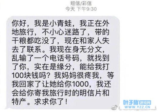 随着旅行青蛙游戏的走红,新的诈骗短信来了!