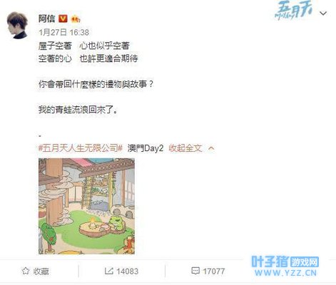 五月天阿信也养了小青蛙,还按照他以往的风格发了一些很有诗意的文字↓↓↓