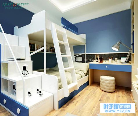 整合儿童房,满足孩子所有物品收纳 除了客厅,最能体现轻生活态度的就是卧室了,全友全屋定制联合知名设计师为孩子们打造健康乐园。“格调空间”儿童房以浅色调为主题,给孩子一个安静、沉稳的空间。一体化设计,从应用场景出发,满足两个孩子睡眠、学习和玩耍的需求;蓝色点缀,让整个空间活泼、灵动;强大的收纳设计,满足各类物品分区收纳,满足不同时节物品收纳。