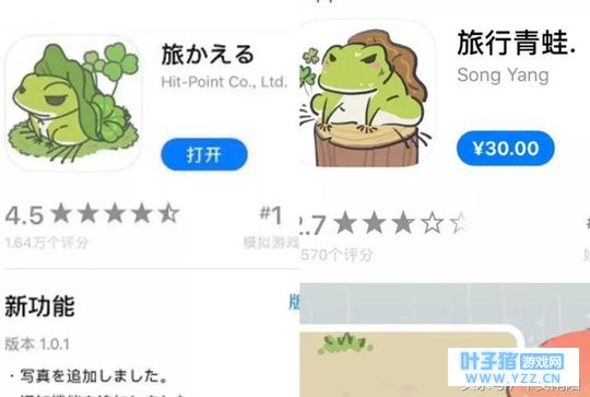 图左为官方正版《旅行青蛙》 那么这款山寨版旅行青蛙 到底是个什么游戏? ▼