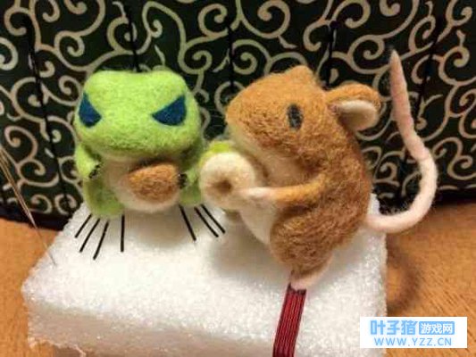 岛国网友マキすけ是《旅行青蛙》的死忠粉丝,因被可爱的小青蛙所感染,于是他突发奇想,自己手工制作了小青蛙的毛毡玩偶,随后他又制作了田鼠的玩偶。