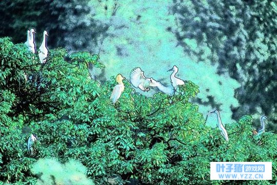 白云乡 呱!我在白云乡观鹭鸶! 呱……呱……呱!这树好高啊!我怎么下去! 一二三,跳……扑通 幸好下面是湖水,安全着陆!