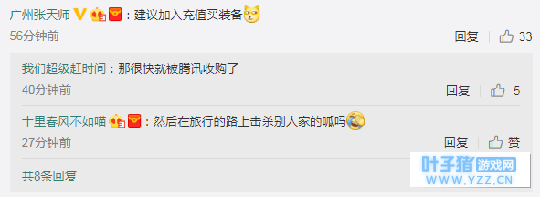 “建议加入充值买装备”、“那很快就被腾讯收购了”、“然后在旅行的路上击杀别人家的呱吗”(王者荣耀重度用户啊)。