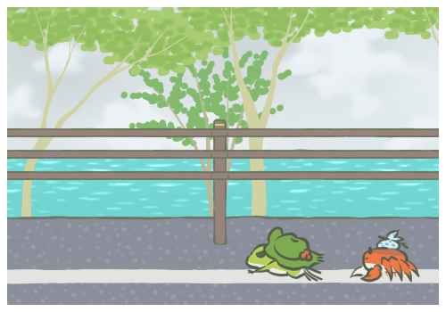 おさんぽ日和 (散步好天气) 学日语、参加过日语能力考的同学都深深地记得这句话“天気がいいから、散歩しましょう!”好天气就是适合散步。蛙仔如果获得了这个称号,可能是因为你给它带上了适合散步的食物,比如葡萄干面包、芝士乳蛋饼这些适合在温暖的地方吃的东西。这时候蛙仔给你寄回来的照片也多是在路边、草丛、海边,这些地方的景致。