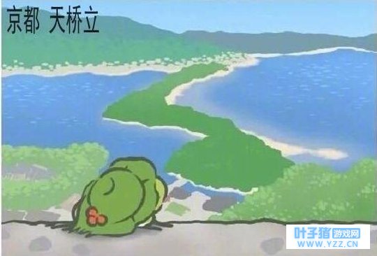 第二张:京都天桥立,是一个非常著名的地方,肯定能有这张明信片的玩家,他的青蛙肯定是比较有艺术细胞的,而且还是比较高贵的,看他背后的帽子就知道了.