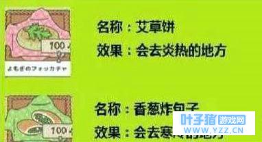 其实这个游戏蛙蛙去哪不是由我们控制的,但是我们能用食物控制蛙蛙的去的大方向! 去每个地方需要喂不同的食物或者道具的,要去温泉建议使用艾草饼和香葱炸包子,我们来看看这两个食物的作用:
