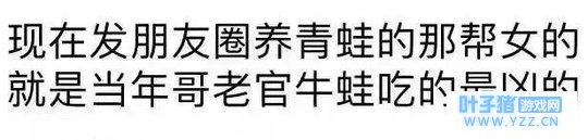 话说前段时间在朋友圈养男人刷屏的是你们 现在养蛙瞎操心刷屏的也是你们 可是别忘了 谁当初吃哥老官吃得最欢? ▼