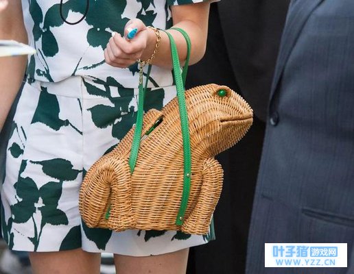 既然要做个蛙系青年,就要做得彻底,时尚配饰也要很蛙系,各种时尚复古的编织手袋,麦茜·威廉姆斯(Maisie Williams)这款青蛙手袋,个性可爱,飘来一股清新自然的田园风。