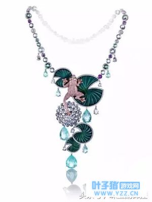 Morphée Reinette 这件项链作品来自 Chopard萧邦 的动物系列,整件作品完美呈现了荷塘月色的美景,海蓝宝的宝石犹如水滴一般晶莹,而我们的青蛙王子则匍匐在了宝石打造的荷叶上。