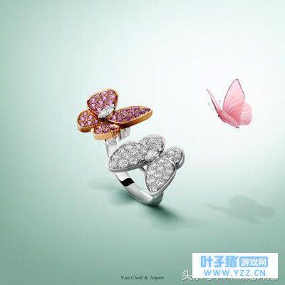 Two Butterfly吊坠项链 指间戒™则演绎了一双蝴蝶在玉指之间翩翩起舞的景象,宛如一场柔美跃动的合舞。Two Butterfly耳环闪烁着钻石与粉色蓝宝石温婉妩媚的光芒,将悸动的美丽瞬间幻化为永恒的生命之美。