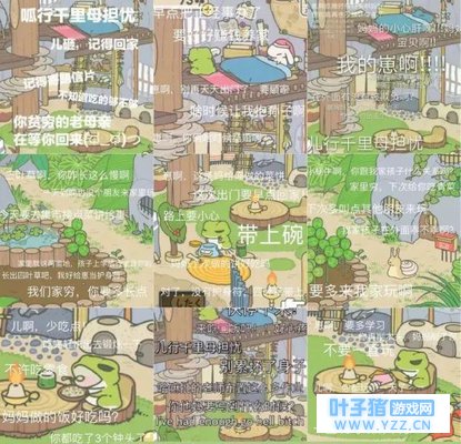 可是蛙崽儿们却一心只想着旅行, 一副 “天下那么大,我要去看看” 的样子, 一袋干粮、一顶草帽就“仗剑走天涯”了。 蛙儿子出走的情况越来越多, 无数老母亲仿佛在一夜之间得了失心疯, 数千个家庭支离破碎……