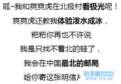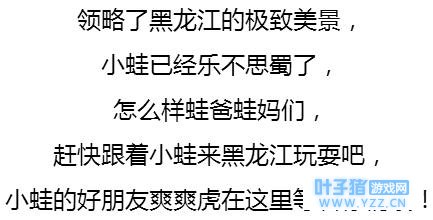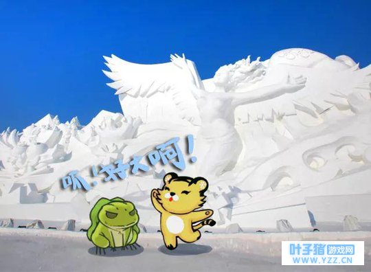 它就是 黑龙江旅游吉祥物爽爽虎 ~ 如果你找不到蛙蛙,嘿嘿~不要担心, 它一定是跟着爽爽虎到黑龙江浪了! 什么?你不相信? 我的乖乖~快来瞧瞧, 你的蛙蛙已经给你寄了好多明信片了呢! 哈尔滨冰雪大世界