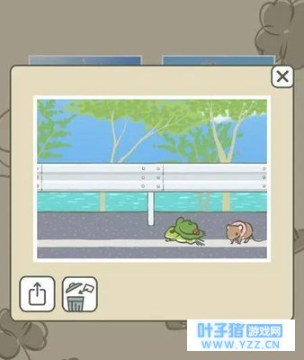 还没等我酸多久,信箱里跳出来一张明信片,仔细一看:号称“孤独的旅行者”的蛙儿子,边上居然出现了一只戴着粉红围巾的老鼠朋友,两人欢快地在高速路上奔跑。