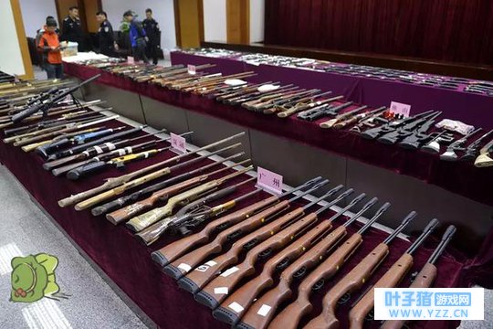 警方展示“蓝箭3”收网行动中缴获的枪支 梁冠华 摄